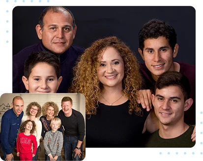 Some of the best family photos happen in your own living room. At-home sessions are perfect for families with young kids or newborns, or for anyone who wants portraits that feel genuinely personal. We bring our lighting equipment to you and work with your space.